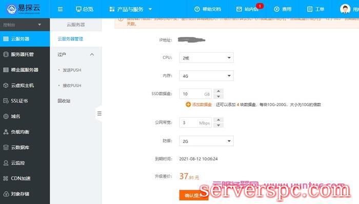 当用户的业务扩大,需要提升云服务器的硬件配置时,可以通过配置调整实现。对于所有云服务器,配置升级的生效时间均为即时生效。那么,易探云服务器的客户如何在后台自己升级配置呢?
