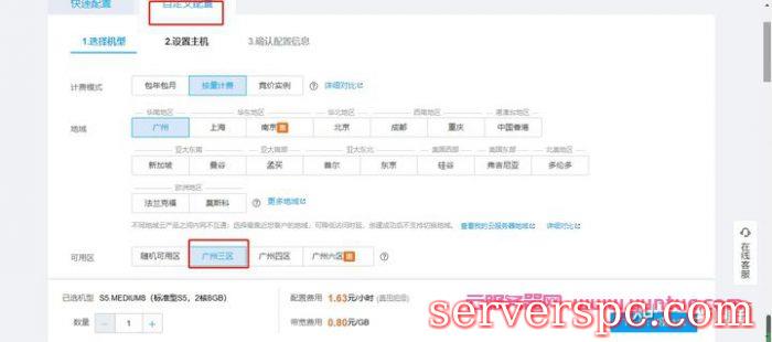 这里选择“按量付费”,选择广州三区可用区(之所以选择广州三区,是因为稍后创建的文件存储的可用区只有三区和四区,所以最好是指定三区,方便后续设置)。
