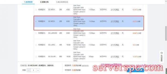 选择标准型S5的2核8G配置。