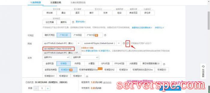 然后我们返回到CVM选购的界面,点一下“网络”选项最右侧的螺旋按钮刷新一下,就会显示新建的私有网络了,此时选择这个私有网络。