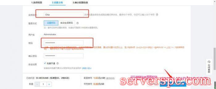然后设置云服务器CVM的登录密码,云主机名字命名为:Chia,并点击“确认配置信息”
