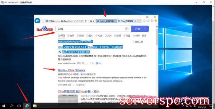 然后,在云服务器里打开浏览器,输入http://baidu.com的网站,再在打开的页面里搜索Chia,找到Chia的官网