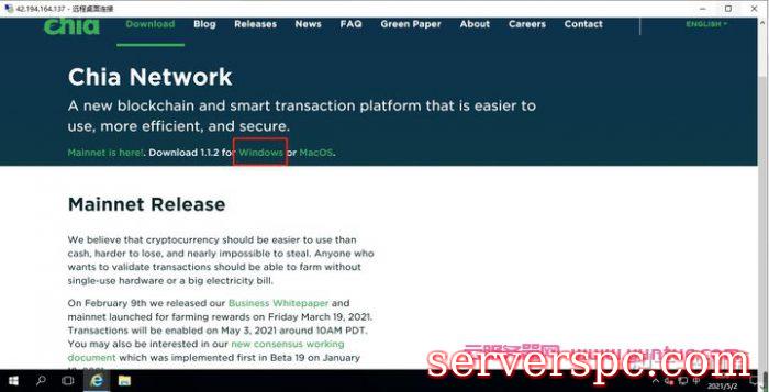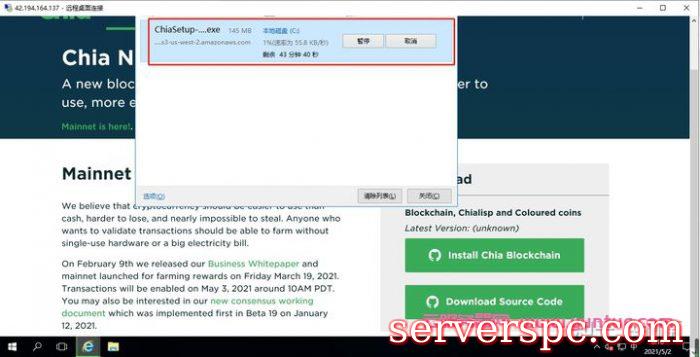 然后点击下载windows版本的Chia软件,下载大概要半个小时左右。