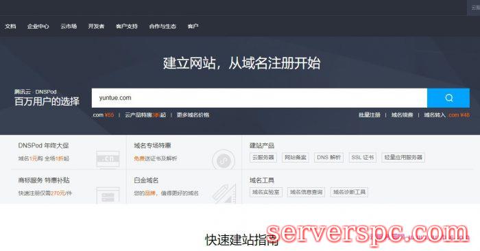 至于到哪里注册域名,云服务器网(yuntue.com)小编推荐大家到国内顶级的域名商,比如:阿里云、腾讯云,也可以购买云服务器到这几个商家,统一注册域名和买云服务器,更加方便自己的管理。
