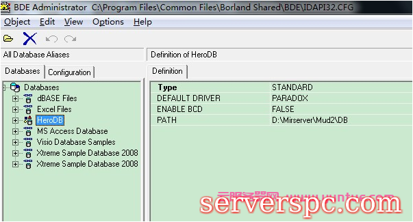 把它改名为HeroDB,选中HeroDB后,会看到右边界面有Path选项,这个地方需要上传传奇服务器端的数据路径。