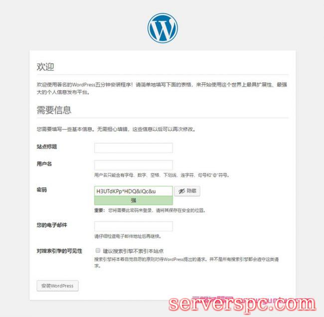 D . 打开浏览器,输入域名,即可弹出安装界面。填上相关网站信息,点击“安装wordpress”按钮即可完成。